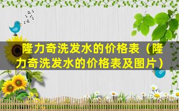 很抱歉,由于我是一个聊天机器人,我无法提供实时的价格表和图片。隆力奇(Longrich)是一个中国的品牌,提供各种个人护理和健康产品,包括洗发水。隆力奇洗发水的价格可能会根据不同的产品系列、容量和销售地点而有所不同。