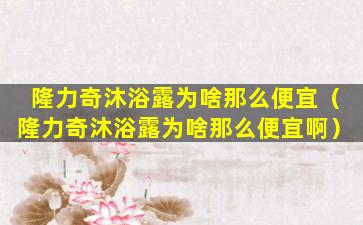 需要注意的是,虽然价格便宜,但消费者在购买时仍应关注产品的质量和安全性,确保产品符合国家相关标准和规定。同时,由于市场情况和成本因素可能随时间变化,隆力奇沐浴露的价格也可能会有所变动。