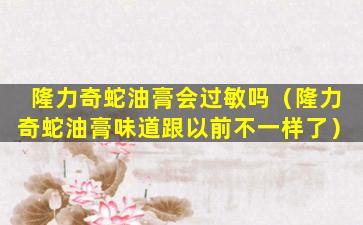 隆力奇蛇油膏是一种常见的外用护肤产品,主要成分包括蛇油、甘油、维生素E等,用于滋润皮肤、防止皮肤干燥。任何护肤品都有可能引起过敏反应,这取决于个人的皮肤类型和对产品成分的敏感程度。
