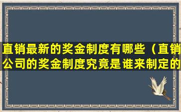 请注意,不同的直销公司可能会有不同的奖金制度,而且这些制度可能会随着时间和市场条件的变化而调整。因此,如果您想了解某个具体直销公司的最新奖金制度,建议直接咨询该公司或查看其官方发布的最新信息。同时,参与直销活动时,应确保了解所有相关的法律法规,并确保所有活动都是合法合规的。