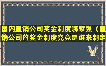 在中国,直销公司的奖金制度各有特点,通常会根据公司的规模、产品类型、市场策略等因素有所不同。以下是一些知名直销公司的奖金制度,但请注意,这些信息可能会随时间而变化,具体情况需要咨询各公司官方渠道或最新的公司公告。