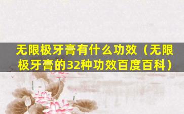 关于“无限极牙膏的32种功效”这一说法,目前没有可靠的来源证实无限极牙膏具有如此多的功效。通常,牙膏的主要功能是清洁牙齿、预防蛀牙、减少牙菌斑和牙龈炎等。如果有关无限极牙膏的具体功效,建议查阅该产品的官方说明或咨询专业医疗人员。同时,消费者在选择牙膏时应关注产品的成分和适用性,以确保安全和有效。