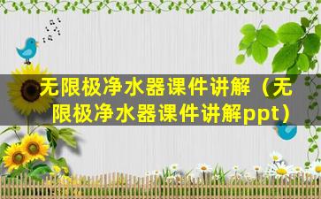 很抱歉,我无法提供具体的“无限极净水器课件讲解ppt”内容,因为这可能涉及到版权问题。不过,我可以为您提供一些关于净水器的基本信息和讲解要点,您可以根据这些信息来制作自己的课件。
