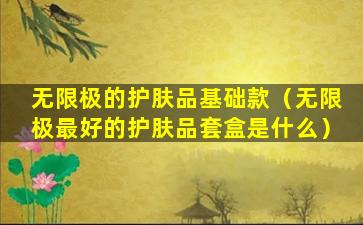 无限极(Infinitus)是一家中国的健康产品公司,隶属于李锦记健康产品集团。无限极提供多种健康和美容产品,包括护肤品。如果您提到的是无限极的基础款护肤品,这通常指的是该品牌的一系列入门级或基础护肤产品,适合日常使用,旨在满足基本的护肤需求。