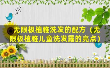 无限极(Infinitus)是一家中国的健康产品公司,隶属于李锦记健康产品集团。植雅是无限极旗下的一个个人护理品牌,提供包括洗发水在内的多种产品。关于“无限极植雅洗发的配方”,由于产品配方属于商业机密,通常不会公开详细信息。不过,根据产品标签和宣传资料,我们可以了解到一些关于植雅洗发水的主要成分和特点。