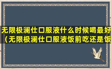 无限极澜仕口服液是一种保健品,其服用时间通常建议在餐后,以减少对胃部的刺激,并帮助更好地吸收其中的营养成分。具体服用时间最好遵循产品说明书或医生的建议。