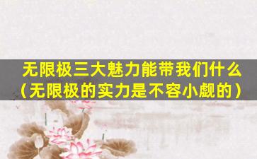 无限极(Infinitus)是一家中国的直销公司,主要销售健康产品。关于“无限极三大魅力”,这可能是指该公司在市场营销中强调的三个吸引消费者的特点或优势。由于这个表述并不是一个标准的术语,我无法提供确切的信息。