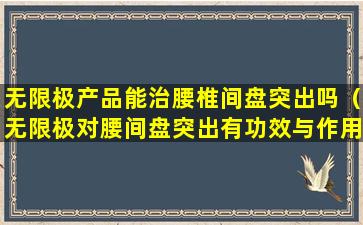 无限极是一家中国的直销公司,主要销售健康食品、个人护理品和家居用品等。关于无限极产品是否能治疗腰椎间盘突出,需要明确的是,任何健康产品都不能替代医学治疗。