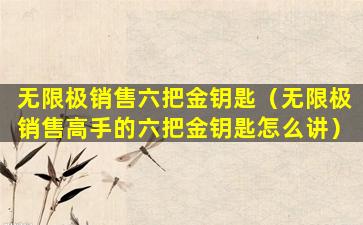 如果您需要了解无限极具体的“六把金钥匙”内容,建议直接咨询无限极公司或其销售人员,以获取最准确的信息。同时,需要注意的是,直销行业在中国受到严格的法律法规监管,销售人员在进行销售活动时应遵守相关法律法规,不得进行虚假宣传或误导消费者。