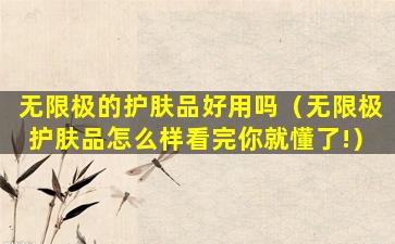 无限极(Infinitus)是中国的一个品牌,隶属于李锦记健康产品集团,主要提供中草药健康产品,包括护肤品。关于无限极的护肤品是否好用,这主要取决于个人的肤质、使用习惯以及对产品的个人体验。