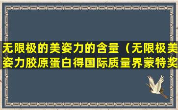 关于“美姿力的含量”,这通常指的是产品中包含的各种营养成分和活性物质的含量。由于产品配方和成分可能会随着时间和市场变化而更新,具体的含量信息需要参考产品最新的包装标签或官方提供的产品说明书。