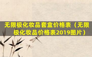很抱歉,我无法提供无限极化妆品套盒的实时价格表和图片,因为我的数据是截至2023年的,并且我无法访问互联网以获取最新信息。无限极(Infinitus)是一家中国的健康产品公司,提供包括化妆品在内的多种产品。