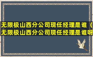 截至我的知识更新日期(2023年),无限极(Infinitus)是一家总部位于中国广州的直销公司,隶属于香港李锦记集团。无限极在中国各地设有分公司,包括山西分公司。由于公司管理层可能会发生变动,且这些信息可能不会即时公开,我无法提供确切的现任山西分公司经理的信息。