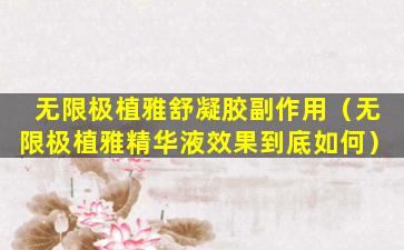 关于“无限极植雅舒凝胶副作用”的问题,首先需要明确的是,任何产品都可能存在副作用,尤其是对于某些特定人群。由于我无法获取最新的产品信息和用户反馈,因此无法提供具体的副作用信息。