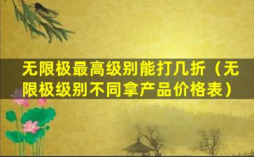 无限极(Infinitus)是一家中国的健康产品公司,隶属于李锦记健康产品集团。关于“无限极最高级别能打几折”的问题,这通常涉及到公司的销售政策和会员制度。不同的公司和产品线可能有不同的折扣政策,这些政策通常会根据会员的级别、购买量、促销活动等因素有所不同。