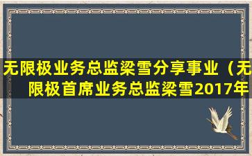 无限极是一家中国的直销公司,主要销售健康产品。关于“无限极业务总监梁雪分享事业”的信息,由于我无法访问最新的数据和信息,无法提供具体的分享内容。如果您对无限极或其业务总监梁雪的分享感兴趣,建议直接访问无限极的官方网站或相关社交媒体平台获取最新和最准确的信息。同时,请注意甄别信息来源,确保获取的信息是官方和可靠的。