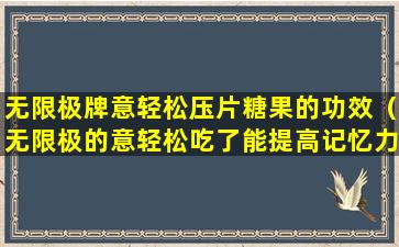 对于“无限极意轻松健压片糖果”的具体功效,建议您查阅产品包装上的说明、官方网站或咨询专业医疗人员。同时,应该注意的是,任何健康产品都不能替代均衡饮食和健康生活方式,也不应该用于治疗或预防任何疾病。