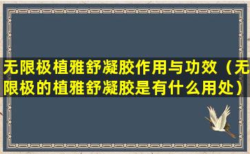 无限极(Infinitus)是一家中国的健康产品公司,其产品线涵盖了个人护理、健康食品等多个领域。植雅舒凝胶是无限极的一款个人护理产品,通常被宣传为具有舒缓和保湿的功效。