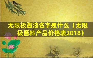 如果您是在寻找某个特定的酱油品牌,可能需要提供更多的信息或者检查您所指的“无限极”是否是正确的品牌名称。在中国,有许多知名的酱油品牌,如海天、李锦记、珠江桥牌等,但这些与无限极公司没有直接关联。