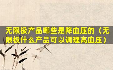 无限极(Infinitus)是一家中国的保健品公司,其产品线涵盖了多种健康食品和营养补充品。根据中国的广告法和相关法规,任何产品都不能直接宣称具有治疗疾病的功效,包括降血压。因此,无限极的产品不会直接标榜为“降血压”的产品。