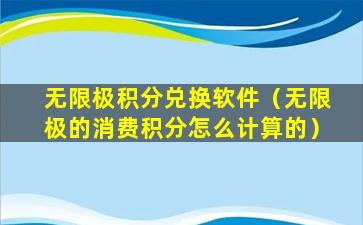 如果您是无限极的会员或直销商,并且想要了解如何使用积分兑换软件,建议直接咨询无限极的官方客服或登录您的会员账户查看相关信息。通常,这类信息会在无限极的官方网站或通过其官方渠道提供。