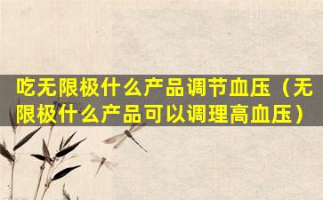 无限极(Infinitus)是一家中国的保健品公司,其产品线包括多种健康食品和营养补充品。关于调节血压的产品,无限极可能会有一些声称能够帮助调节血压的产品,但是需要注意的是,任何关于健康产品的声明都应该基于科学证据,并且最好在医生或专业医疗人员的指导下使用。