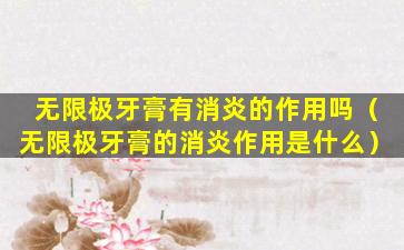 请注意,我的知识截止日期是2023年4月,关于无限极牙膏的具体信息可能需要通过官方渠道或最新资料来获取。如果您对无限极牙膏的消炎作用有疑问,建议直接咨询无限极公司或查看其官方网站上的产品说明。