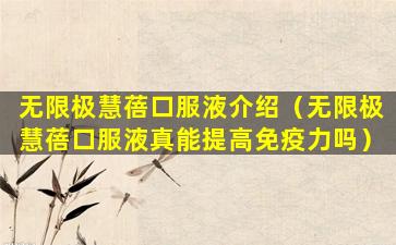 无限极慧蓓口服液是无限极公司生产的一款产品,它宣称含有多种植物提取物,旨在帮助提高免疫力。关于这类产品的效果,需要谨慎对待。