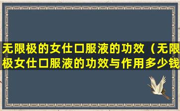 无限极(Infinitus)是一家中国的保健品公司,其产品线包括多种口服液、胶囊、粉剂等。女仕口服液是该公司针对女性消费者推出的一款产品,主要宣称的功效包括调节女性生理机能、改善体质、美容养颜等。