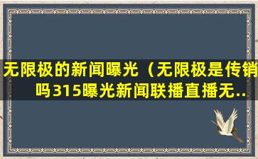至于“315曝光新闻联播直播无限极”,这可能是指在某个时间点,中国中央电视台(CCTV)的“3·15晚会”(一个旨在揭露消费者权益问题的年度节目)可能报道了与无限极相关的问题。由于信息不完整,无法提供具体的报道内容和时间。