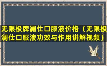 如果您想了解“无限极牌澜仕口服液”的具体价格,建议您可以通过以下几种方式获取信息: