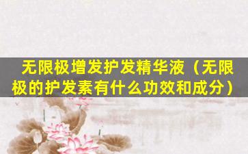 无限极(Infinitus)是一家中国的健康产品公司,隶属于李锦记健康产品集团。它生产和销售各种健康食品、个人护理产品等。关于“无限极增发护发精华液”是否有效,这取决于多个因素,包括产品的成分、使用者的个人体质、使用方法以及期望的效果等。