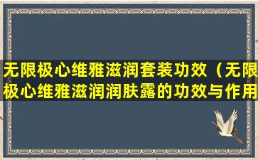 请注意,以上信息是基于一般润肤露产品的常见功效,具体到无限极心维雅滋润润肤露的功效和作用,建议参考产品官方说明或咨询专业人士。同时,由于每个人的肌肤状况和反应不同,使用任何护肤产品前,最好先在小面积肌肤上进行测试,以确保不会引起不适或过敏反应。