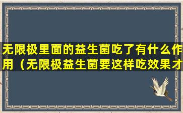 请记住,每个人的身体状况和需求不同,因此在服用任何保健品之前,最好咨询专业医疗人员的意见。如果您有无限极益生菌的具体产品,建议您参考该产品的详细说明或联系生产厂家获取准确的服用指导。