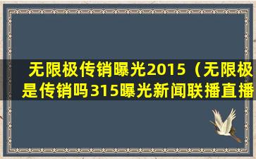 至于“315曝光新闻联播直播无限极”,这可能是指在中国的消费者权益保护日(3月15日)期间,新闻媒体对某些企业或产品进行的曝光报道。如果有关无限极的报道,通常会涉及消费者对其产品或销售模式的投诉和质疑。具体的新闻内容和报道情况需要查阅当时的官方新闻报道或权威媒体的记录。