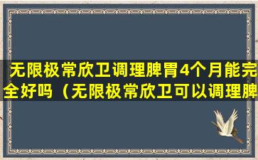 无限极常欣卫是一种保健品,它含有多种中草药成分,旨在帮助调理脾胃功能。保健品并不是药物,它们不能替代医生的诊断和治疗。关于“调理脾胃4个月能完全好吗”的问题,这取决于个人的具体情况,包括脾胃问题的严重程度、个人的生活习惯、饮食结构、是否同时接受其他治疗等多方面因素。
