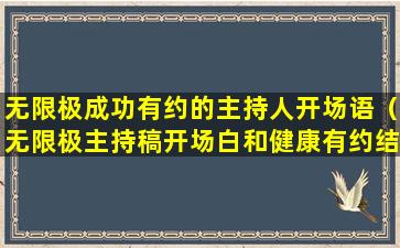 无限极是一家专注于健康产品的公司,其主持稿的开场白和健康有约结束语应当体现出公司的理念和产品的特点。以下是一个示例: