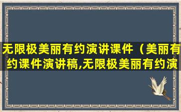 很抱歉,我无法提供具体的“美丽有约课件演讲稿”或“无限极美丽有约演讲稿”,因为这些内容通常是特定活动或公司的内部资料,可能受到版权保护。如果您需要撰写关于美容、健康或个人发展的演讲稿,我可以提供一些通用的建议和指导。