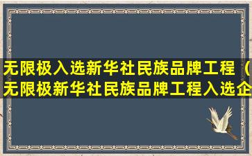 请注意,以上信息是基于一般情况下的描述,具体关于无限极是否真的入选新华社民族品牌工程,以及相关的详细信息,需要查阅最新的官方公告或新闻报道来确认。