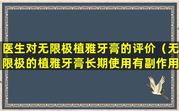 无限极(Infinitus)是一家中国的健康产品公司,其产品包括植雅牙膏。关于植雅牙膏长期使用的副作用,目前没有公开的科学研究或官方声明指出该产品有长期使用的副作用。