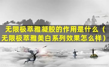 无限极(Infinitus)是中国的一个健康产品品牌,隶属于李锦记健康产品集团。萃雅(Cendrear)是无限极旗下的一个护肤品系列,其中包括美白护肤品。美白护肤品通常旨在减少皮肤色素沉着,提亮肤色,改善肤色不均等问题。