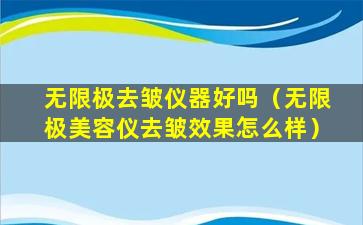 无限极是一家中国的直销公司,主要销售健康食品、个人护理品和家居用品等。关于“无限极去皱仪器”,由于我无法获取最新的市场信息,因此无法提供具体的评价。不过,我可以提供一些一般性的建议,帮助您评估任何去皱仪器或产品的效果和安全性: