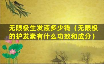 无限极(Infinitus)是一家中国的健康产品公司,其产品线涵盖了保健食品、个人护理品等多个领域。关于无限极的护发素,由于产品线可能会有更新和变化,具体的成分和功效需要参考最新的产品说明书或者官方网站提供的信息。