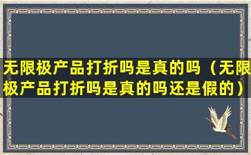关于“无限极产品打折”的信息,需要谨慎对待。在互联网上,有时会有不实信息或诈骗行为,声称提供无限极产品的折扣,但实际上可能是为了骗取个人信息或金钱。因此,如果您在网上看到关于无限极产品打折的信息,应该通过官方渠道或授权的直销商来验证其真实性。