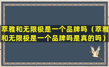 如果你在网络上看到关于“萃雅和无限极是一个品牌”的说法,这可能是一个误解或者错误的信息。在购买任何产品之前,建议你通过官方渠道或可靠的信息来源进行核实,以确保你获得准确的品牌和产品信息。