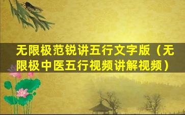 关于“无限极中医五行视频讲解视频”,目前没有官方的信息或者权威的资源可以提供。无限极是一家以中草药健康产品为主的公司,而中医五行理论是中国传统医学中的一个重要组成部分,它包括金、木、水、火、土五个元素,这些元素相互作用、相互制约,构成了一个动态平衡的系统。