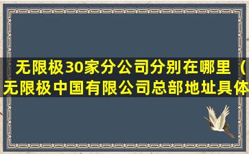 如果您需要了解无限极的具体分公司位置,可以访问无限极的官方网站或联系其客服获取最新的分公司信息。由于公司可能会有调整和更新,具体的分公司数量和位置可能会有所变化。