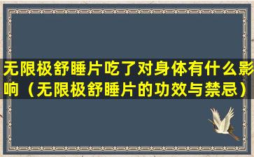 无限极舒睡片是一种保健品,其主要成分通常包括中草药提取物,旨在帮助改善睡眠质量。关于无限极舒睡片的具体成分、功效和禁忌,需要查阅该产品的官方说明书或咨询专业医疗人员。