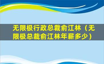 关于“无限极行政总裁俞江林”的信息,由于我的知识截止日期是2023年,我无法提供最新的个人资料或动态。如果俞江林是无限极的高层管理人员,他可能会负责公司的日常运营、战略规划、市场拓展等关键职责。具体的职责和成就需要查阅最新的资料或无限极官方发布的信息。