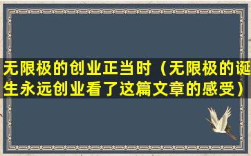 关于“无限极的诞生永远创业看了这篇文章的感受”,这可能指的是阅读了关于无限极公司创立和发展历程的文章后的个人感受。每个人的感受可能会有所不同,但通常可能会包含以下几个方面:
